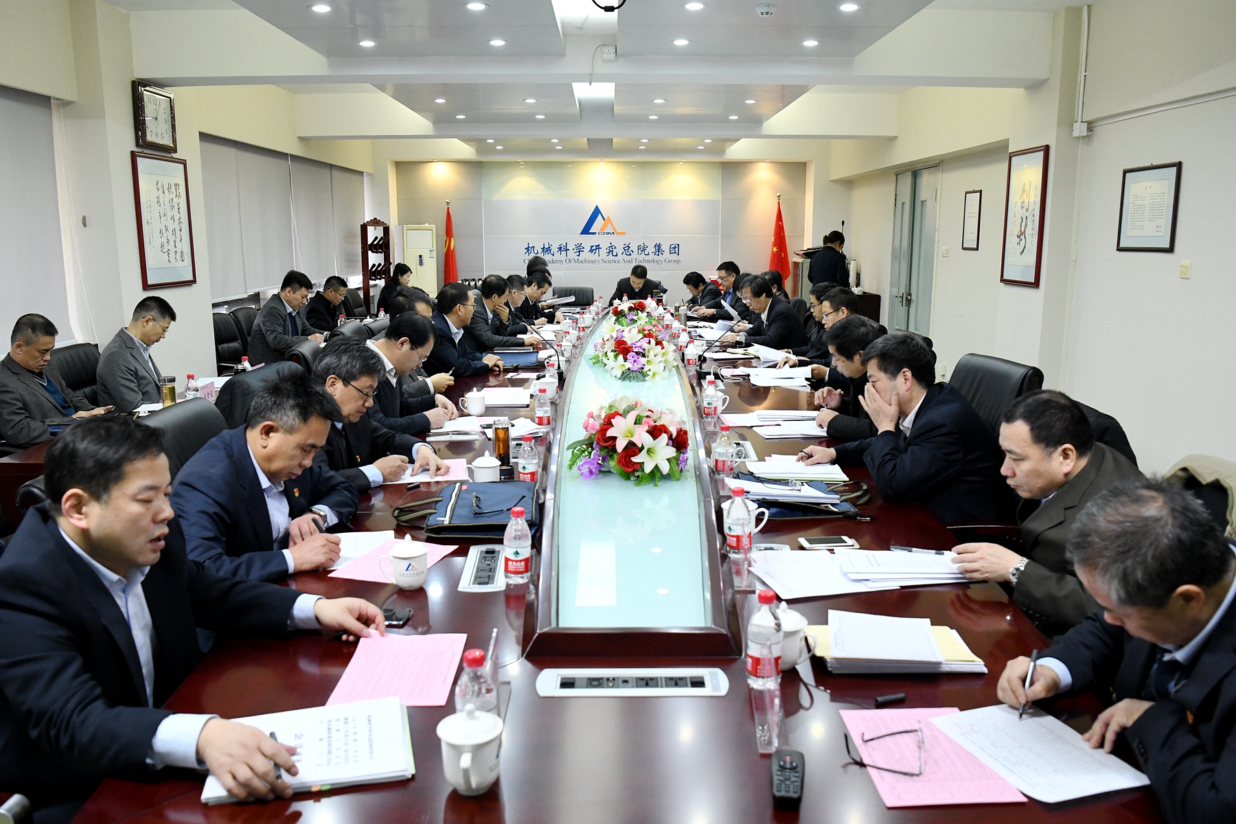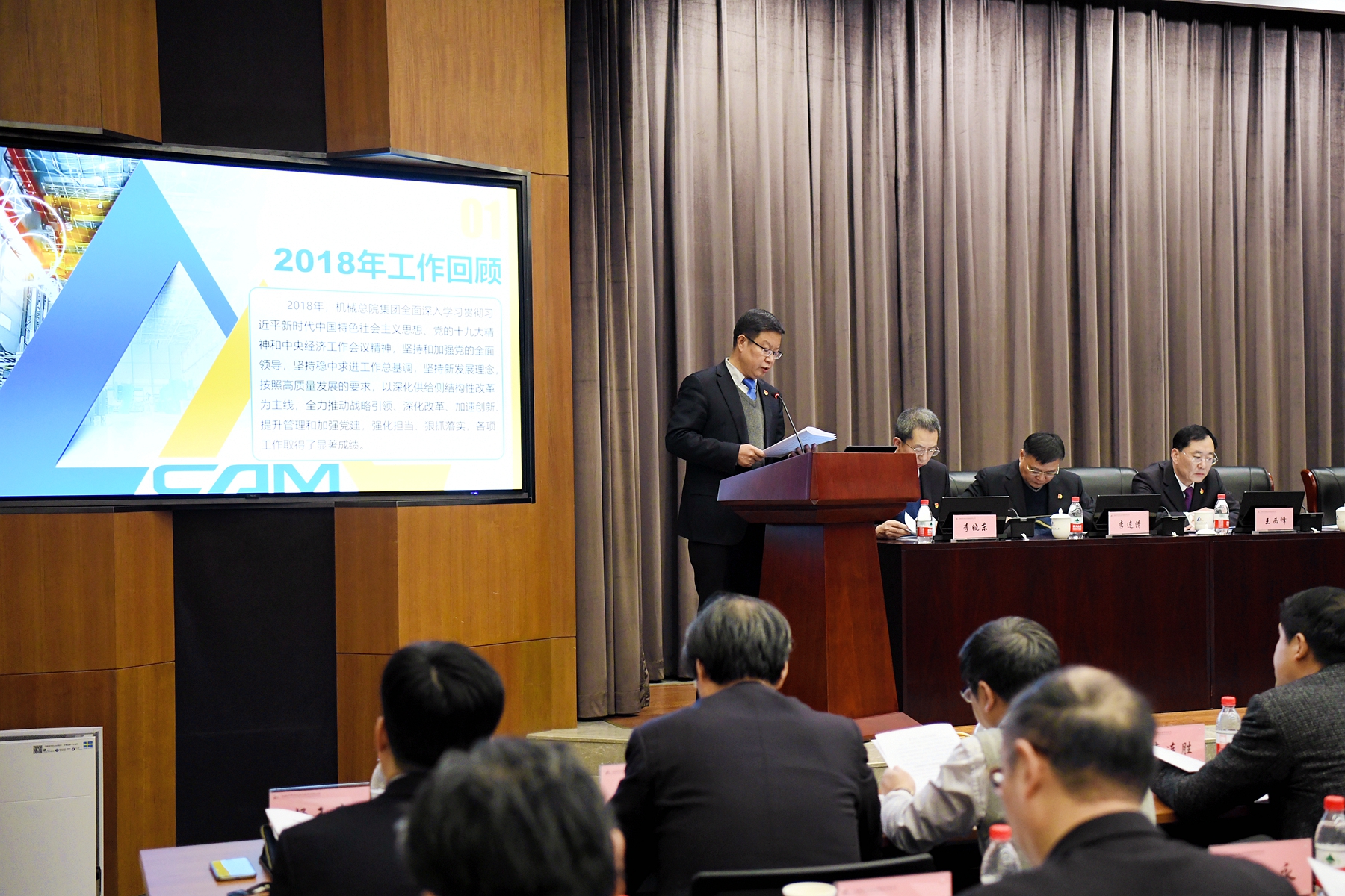 王德成董事長、黨委書記、總經(jīng)理代表集團(tuán)領(lǐng)導(dǎo)班子在年度工作會議上作了《發(fā)揮黨建優(yōu)勢 深化改革創(chuàng)新 奮力開啟機(jī)械總院集團(tuán)高質(zhì)量發(fā)展新征程》的工作報告,報告全面回顧了機(jī)械總院集團(tuán)2018年度工作,傳達(dá)了國資委對中央企業(yè)和地方國資委的工作要求,客觀分析了集團(tuán)當(dāng)前面臨的形勢和任務(wù),詳細(xì)部署了集團(tuán)2019年度工作。王德成董事長指出:2018年,機(jī)械總院集團(tuán)全面深入學(xué)習(xí)貫徹習(xí)近平新時代中國特色社會主義思想、黨的十九大精神和中央經(jīng)濟(jì)工作會議精神,堅持和加強(qiáng)黨的全面領(lǐng)導(dǎo),堅持穩(wěn)中求進(jìn)工作總基調(diào),堅持新發(fā)展理念,按照高質(zhì)量發(fā)展的要求,以深化供給側(cè)結(jié)構(gòu)性改革為主線,全力推動戰(zhàn)略引領(lǐng)、深化改革、加速創(chuàng)新、提升管理和加強(qiáng)黨建,強(qiáng)化擔(dān)當(dāng)、狠抓落實(shí),各項工作取得了顯著成績。2019年,機(jī)械總院將以習(xí)近平新時代中國特色社會主義思想為指導(dǎo),全面貫徹黨的十九大、十九屆二中、三中全會和中央經(jīng)濟(jì)工作會議精神,堅持和加強(qiáng)黨的領(lǐng)導(dǎo),緊緊抓住機(jī)械總院集團(tuán)發(fā)展重要戰(zhàn)略機(jī)遇期,按照高質(zhì)量發(fā)展要求,發(fā)揮黨建優(yōu)勢,深化戰(zhàn)略引領(lǐng),做強(qiáng)應(yīng)用型科研、持續(xù)提升創(chuàng)新力,做優(yōu)服務(wù)型產(chǎn)業(yè)、加力行業(yè)服務(wù)引領(lǐng)力,保持技術(shù)經(jīng)濟(jì)穩(wěn)定增長,為推動裝備制造業(yè)高質(zhì)量發(fā)展、助力制造強(qiáng)國戰(zhàn)略實(shí)施做出新貢獻(xiàn)。